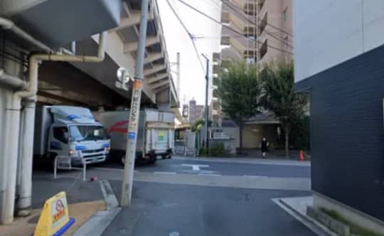 画像右にソープランドの看板が見える...その手前左のビル2階が目的地「モンキーベイビー」です。