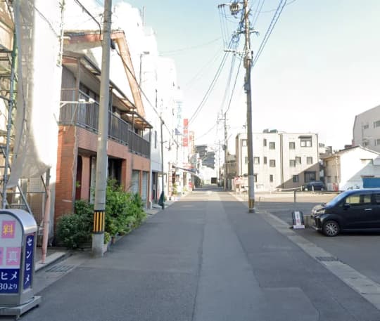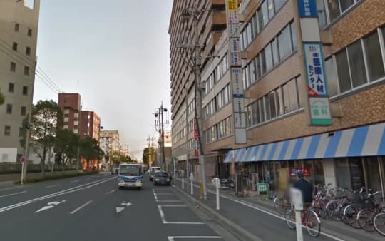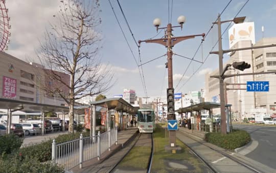 市電に乗ったら、「新屋敷駅」で下車しましょう。横断歩道を「城南通り」方面へ歩きます。五叉路なので迷わないように気をつけて下さいね。