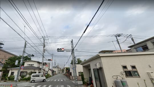 このような左右に大きい道のある交差点に出たら、道路を渡り真っ直ぐ進みます。