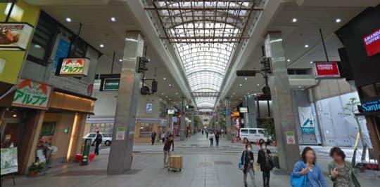 電停「大街道駅」を出てすぐに【大街道】と書かれたアーケードがあるので、そのアーケードを進んでいきます。