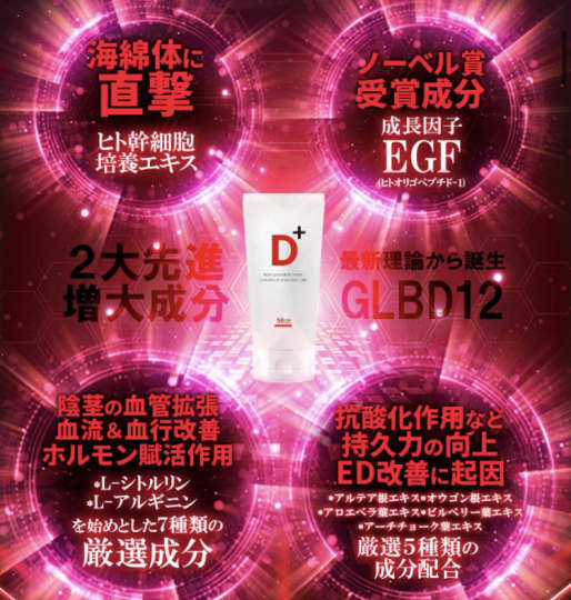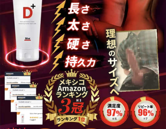 "Dplus(ディープラス)"はメキシコで大人気の精力剤です。飲むのではなく塗る精力剤なので、プレイ前にさっと濡れば即効性効果も期待できます。短小だけではなく勃起力・回復力でお悩みの方も必見!効果が実感できなければ返金もOK!今ならお得な料金で購入できますよ。