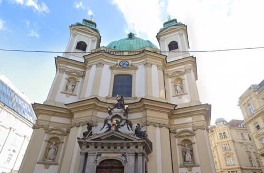シュテファン大聖堂のすぐ近くにあるペーター教会は、9世紀に建てられたかなり古い教会。緑色のドームのような屋根がかわいらしい外観です。
