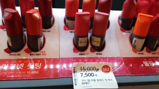 韓国のセールは割引率が高いことや、1+1や2+1といった、1つおまけになるセールもあります。同じラインの商品なら、違う組み合わせでも可能です。注意しなければいけないのが、バニラコ、クリオ、ミシャ、トニモリは会員でなくてもセール価格で買えますが、ETUDE HOUSEやinnisfreeは、会員のみのセールが多いので注意が必要です。旅行者でもセール価格で買えるか、最初に聞いた方が良いでしょう。どうしても商品を売りたいお店だと、セール価格で売ってもらえることもあります。オリーブヤング等の化粧品販売チェーンは、旅行者でもセール価格で販売しています。