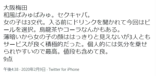 まず紹介させていただく大阪のセクキャバは和風ぱみゅぱみゅさん!