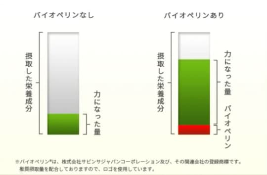 バイオぺリンを一緒に摂取するだけで、力になった量が格段にアップしています。