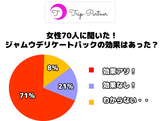 こちらのグラフはSNSを使用して、デリケートパック愛用者の女性70人に「ジャムウデリケートパックの効果を実感できたか?」についてアンケートを取ったグラフです。