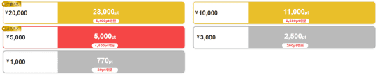 でもこれが5,000円なら1100pt、20,000円だと5400ptも増量されるんですね!