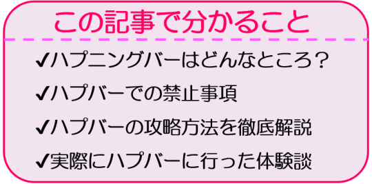 攻略法をご紹介する前に、まずはハプニングバーについて軽く説明しておきますね。