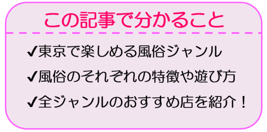 さすがにそれは大げさとしても、東京の風俗は種類が多いのは間違いありません。