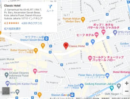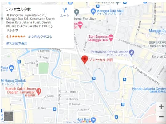 ちなみジャヤカルタ駅からも近いので、電車で駅まで行った後にGoogle mapを使って歩いてもアクセス出来るので、自分の宿泊先ホテルの場所と照らし合わせて、どちらにするか考えてから選ぶと良いでしょう。