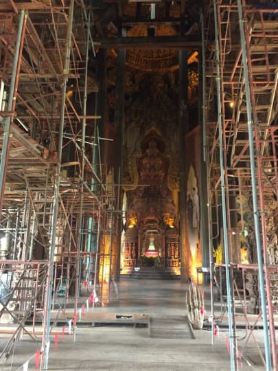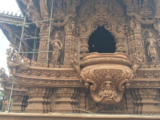 サンクチュアリ正面から寺院の横に周って行くといきなり現在制作中の現場に出くわします。 今、まさにまだ製作中で有る事が伺える貴重なシーンです。