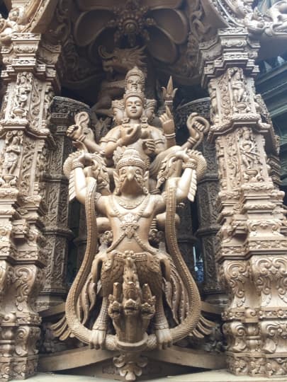 この手前の守護神?の左右対称の造作の素晴らしさ。 横の柱に施されている彫刻にも一切の妥協が感じられません。