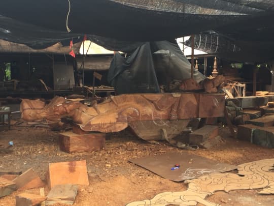 こんなただの木材から、あの素晴らしい造形物が作りあげられていくのです。 ちなみに、職人はタイ人だけではなく、ラオスやミャンマー人なども多数いるのです。