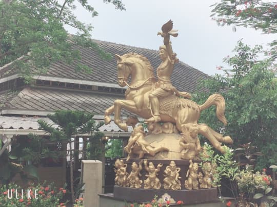 サンクチュアリ入口手前に有る、黄金の像。タイ人はとにかくゴールドが好き。タイ人は世界でも稀に見るゴールド好きなのです。ここパタヤでも、街のあちらこちらにゴールドショツプが有ります。タイでは、何かに付けてはプレゼントは、必ずゴールドと言われる程です。私も彼女にネックレス・リング・ブレスなど、おねだりされ買わされました。笑
