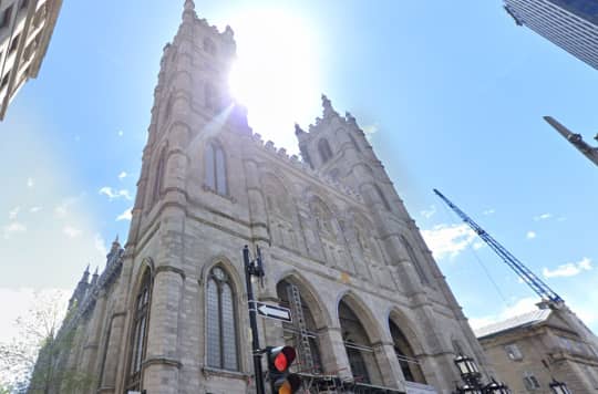 それではモントリオール旅行で必見の観光地を紹介していきます。モントリオールでとくに見逃せないのは、こちらのノートルダム大聖堂です。モントリオール歴史的地区にあり、2本の塔が目印です。