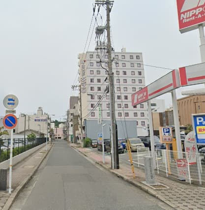 国道を渡ったら右へと直進し、レンタカー店を左折しやや道なりに進みます。