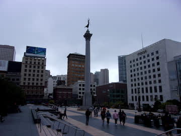 サンフランシスコの中心地とも言えるユニオンスクエア。周辺は高級ブランド店やデパートが立ち並ぶ、ショッピングエリアです。この地域にはホテルやレストランも多く便利なのですが、何かと割高な印象です。経済的に旅行したい場合には、ほかのエリアに滞在した方がいいと思います。
