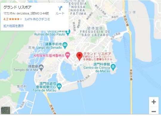 マカオ市内の夜遊び中心地である「ホテルリスボア」から歩いて15分程の位置に点在しています。