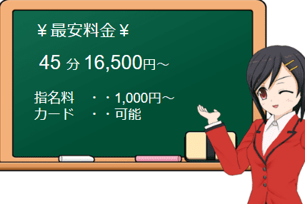 料金 | 45分 1万6千円~ | 40分 1万5千円~ | 30分 3,900円~ | 70分 1万2千円~ | 60分17,000円 | 50分15,000円 | 30分5,000円 |