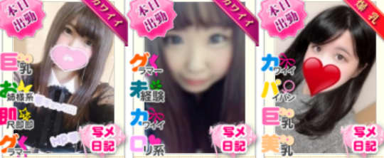 タイプ | 可愛い系 | ロリ系 | 素人系 | コスカワ | 綺麗系 | 綺麗系 | 可愛い系 |