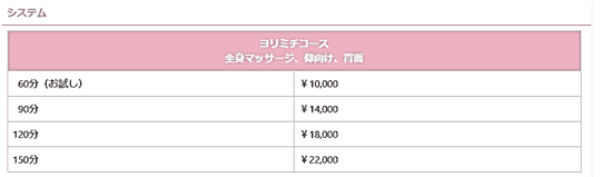 料金 | 60分9,000円~ | 60分8,000円~ | 60分9,000円~ | 60分10,000円~ | 60分13,000円~ |