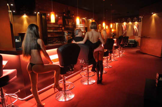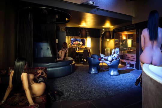 シャワーを浴び終え、いざラウンジの中に入っていくと、直ぐに入り口付近に立っていたランジェリー姿の二人の女の子が筆者のガウンの中に手を伸ばし体を撫でながら声をかけてきた。