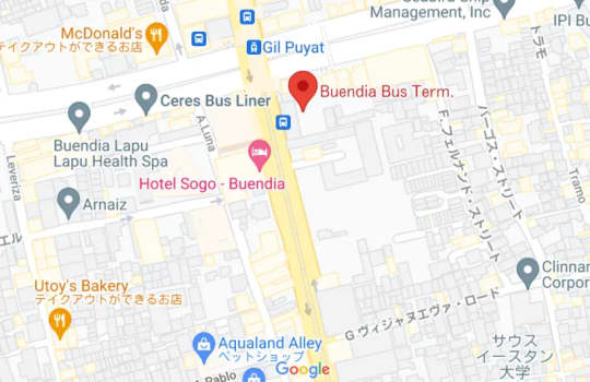 パサイ市の「ブエンディア・バスターミナル」は、マニラの有名な和食屋「ネモト」の西にあります。Gil Puyat駅からすぐ南です。
