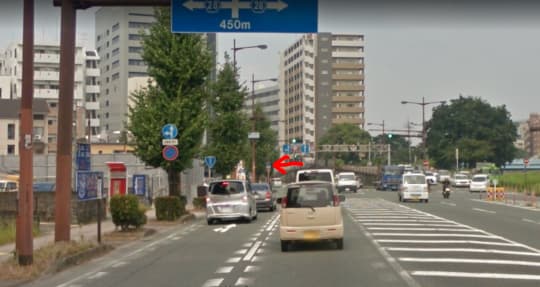 次は「熊本城県(道28号線)」(左)の標識が見えた信号を左折してください。