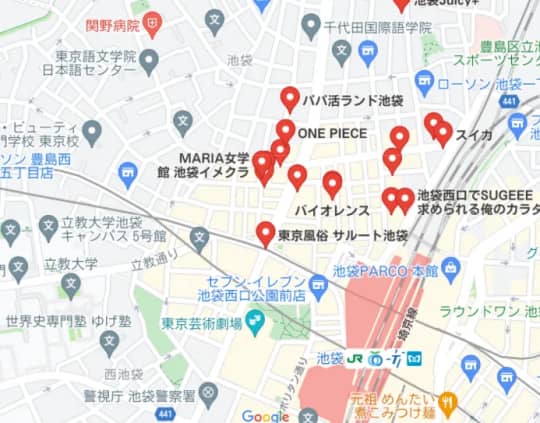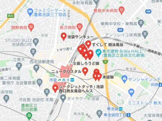 池袋はラブホテルが多く、デリバリー系を中心に数々の風俗店が軒を連ねている街です。