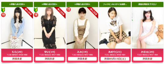 可愛いだけでなく、年齢も10代後半~20代前半ばかりなので、フリーで入ってもハズレを引いたと感じることが少ないでしょう。