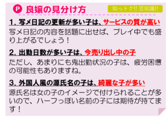 嬢の数が多くないから、人気嬢の指名ができないこと多いよね。