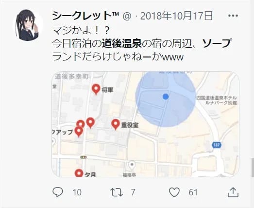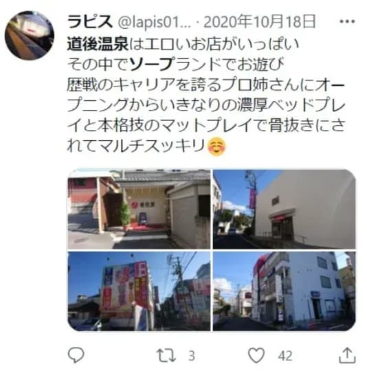 松山のソープは温泉街の道後に集中しています。