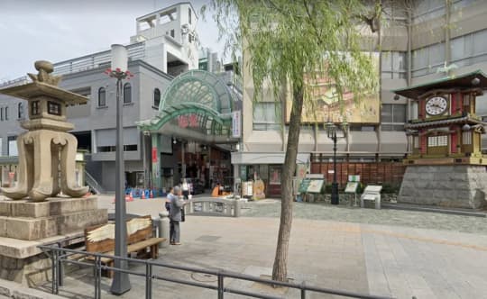 最寄り駅は、伊予鉄・松山駅前線の道後温泉駅です。路面電車の駅で、レトロな大正時代風の風情ある駅舎です。
