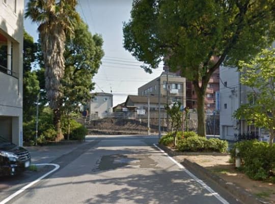 セブンイレブンの先を右折し、中央分離帯がある道を300メートルほど、突き当たるまで南下します。