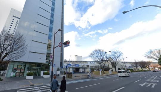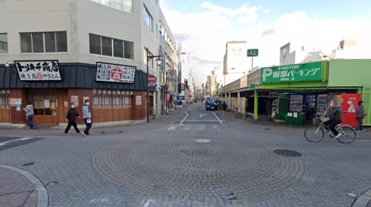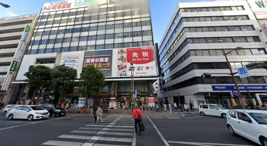 駅を背に正面を見ると「ドン・キホーテ」と「免税」の看板が大きく見えます。