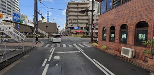 次の十字路も、突き当たるまで真っすぐ進んでください。