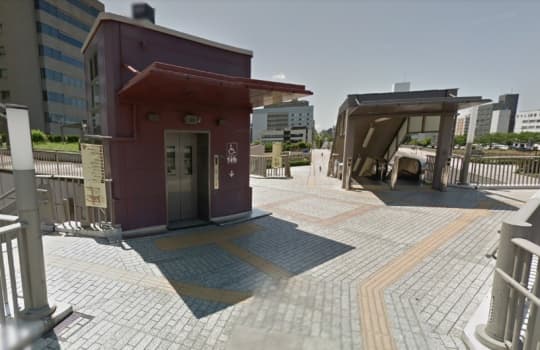 真っすぐ進んでくると「エレベーター」が見えます。そこを画像左の階段を降りてください。