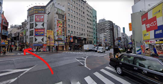 駅を出ると横断歩道を渡り明治通り・ビックカメラ方向へ向かって直進します。