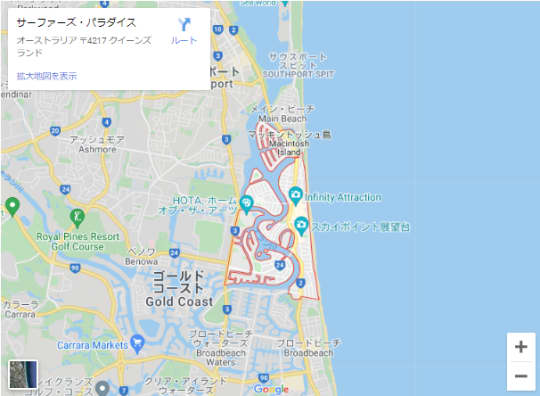 サーファーズパラダイスの場所は以下の通りです。