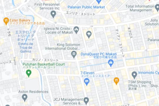 ブエンディア大通りからバティスタ通りに折れて北上する場合、300mほど先の右側にセブンイレブンがあります。タクシーはその辺で下車しましょう。