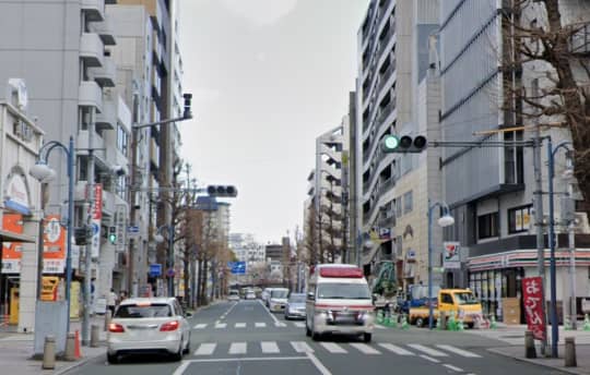 こちら左側に見える白く細長いビルが、目的地「バルボラ・マリンブルー」です。