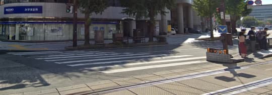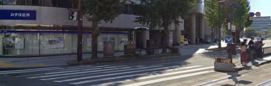 なのでJR熊本駅前の市電B系統に乗り換え、画像左に見える「花街駅」で降車してください。