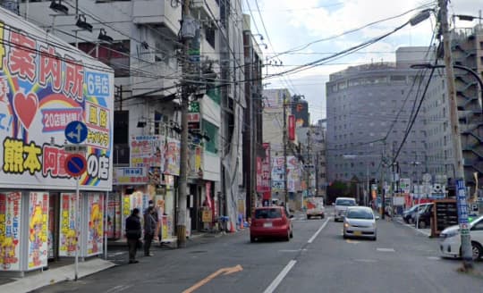 熊本の繁華街は中央区にあり、駅から少し離れています。