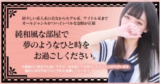 純和風のお部屋で、20代前半の可愛い女の子と楽しめるお店。オレンジハウスの姉妹店だけに、女の子のレベルが高いです!