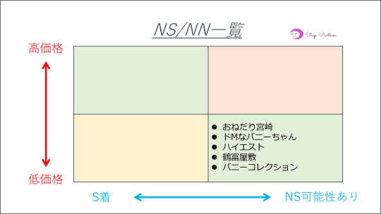宮﨑のソープは少ないものの、半数がNS提供店となっています。