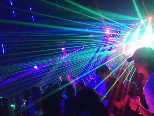 日本から輸入したカラオケ設備の充実ぶりが目を引きます。音楽に合わせて変化する照明、さらにスモーク・マシーンも。