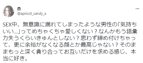 セックス中にキスを沢山してくれるとそれだけで気持ちいいです。