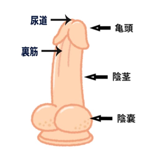 裏筋は、陰茎(竿)の裏側に当たる部分で、咥えると舌で刺激しやすい箇所。
