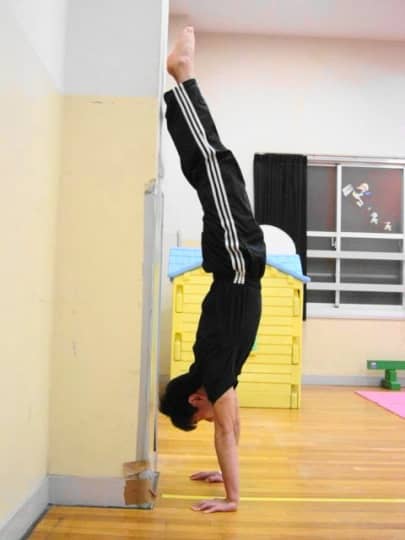 ハンドスタンド(倒立)ができない場合は、壁を使いましょう。