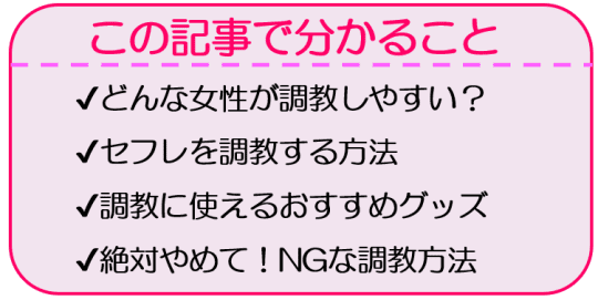 今記事を参考にしてセフレの上手な調教手順を学んでいきましょう!